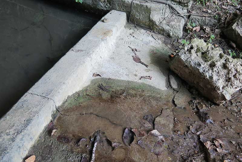 西側角まで来ました。篠原隊長率いる一中勤皇隊本部本隊は、この西側角の敷地内塀際に寄り添うように寝ていたそうです。また上掲写真で書きましたが、篠原保司中尉等数人は、正門横のガジュマルの木の株元で旅装を解いたと言います。深夜ガジュマル付近で艦砲砲弾か迫撃砲弾が炸裂し、頭部に砲弾破片の直撃を受けた篠原隊長は、一声も発することなく即死されたという事です。著者による聞き取り調査によりますと、篠原隊長が戦死されたのは6月10日頃だと言います。