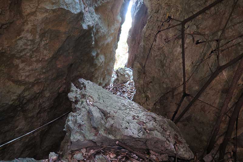 二箇所目の岩穴に入り、遺骨収集情報センターのIさんが間もなく通り抜けようとしている所を撮影させて頂きました。お顔を写さない為に、こうした形になってしまいました。申し訳ございません。m(_ _)m