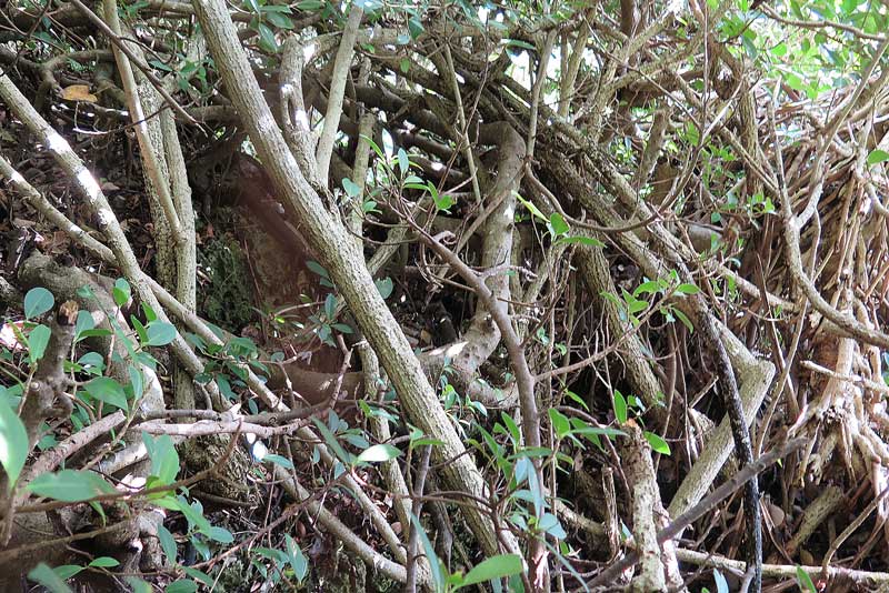 凄い事になっています。この辺りは谷になっていますし、地盤が土なので、トウツルモドキが繁茂しやすい状況になっているのが原因で、昔と比べ一段とジャングル化していると思われます。