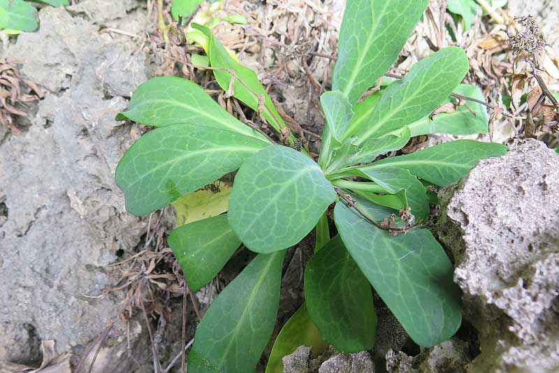 岩に張り付くように、沖縄の島野菜の一つである「ニガナ」を見つけました。私は食べた事は無いのですが、名前の通り苦いようですが、その苦みが癖になるらしいですよ。(^o^)