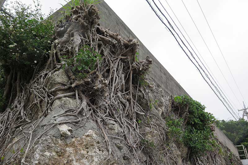 コンクリート製の擁壁をアップしました。擁壁に根を張っていた樹木、恐らくガジュマルだと思われますが、一昨年に枯らす事を前提としたのでしょう深く切られていました。
