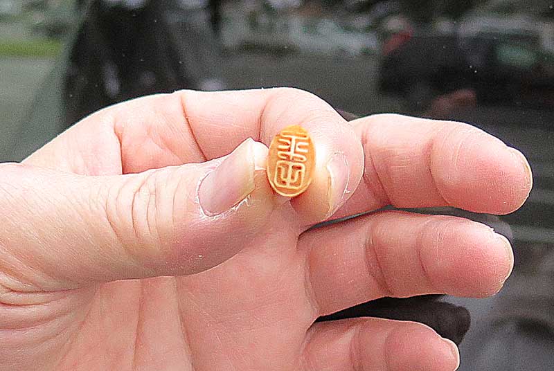 三浦さんが昨日見つけた印鑑を、綺麗に清掃して持参して下さいました。ご覧下さいませ。「平田」と読めないでしょうか?