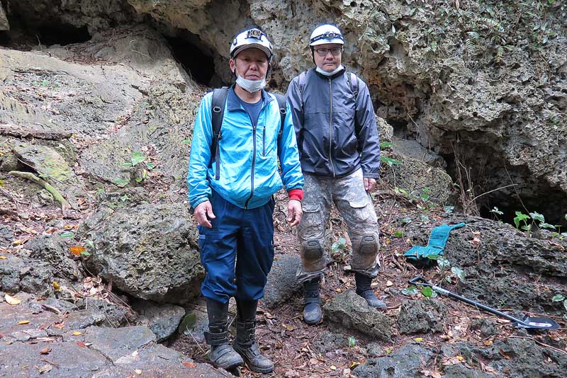 壕の上側の穴からお二人を撮影しました。この壕への出入りは、ここからも行った可能性があります。上側にも隠れる場所がありますので、そことの行き来が安全に行えますからね。