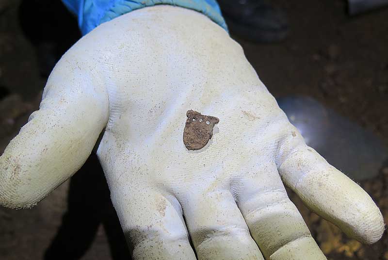 一個の歯をも漏らさないように、フルイに土を入れる→フルイを振るって細かい土砂を落とす→フルイに残った土砂を捨てる。をひたすら繰り返す作業が続きます。