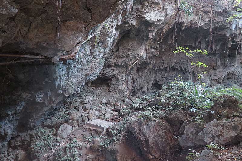 写真中央部に黒っぽく小さな壕口が写されていますね。沖縄戦当時は「下の壕」、戦後の呼び名である地下3階への入り口となる場所です。「下の壕」への出入り口はここ一カ所だけのようですがの、壕内部を流れる川下から外に出たと言う証言もあるようです。