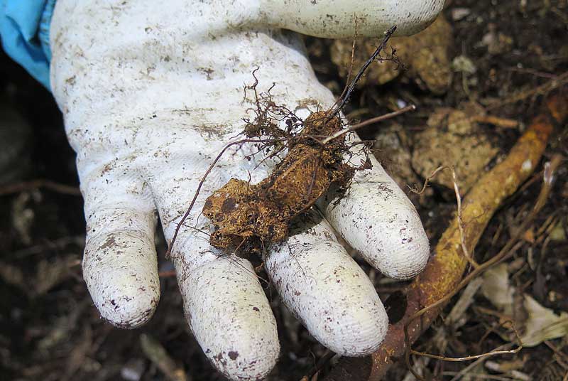 福岡さんです。絡まる根と格闘しています。