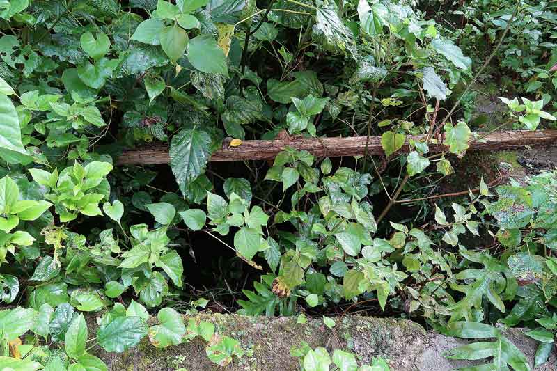 「南禅廣寺」の右側に来ています。ここは昔からずっと縦穴がありました。今は完全に塞がれた印象です。壕内部はしっかりと落盤防止措置が講じられたのでしょう。