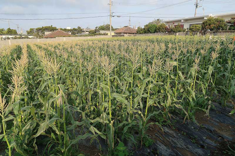 こちらはトウモロコシ畑ですね。雄穂が開き受粉の時を迎えているようです。