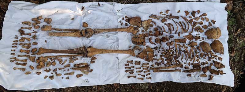 上半身のご遺骨です。脊椎の数が少ないですが、上半身は満遍なく揃っていると言う印象です。