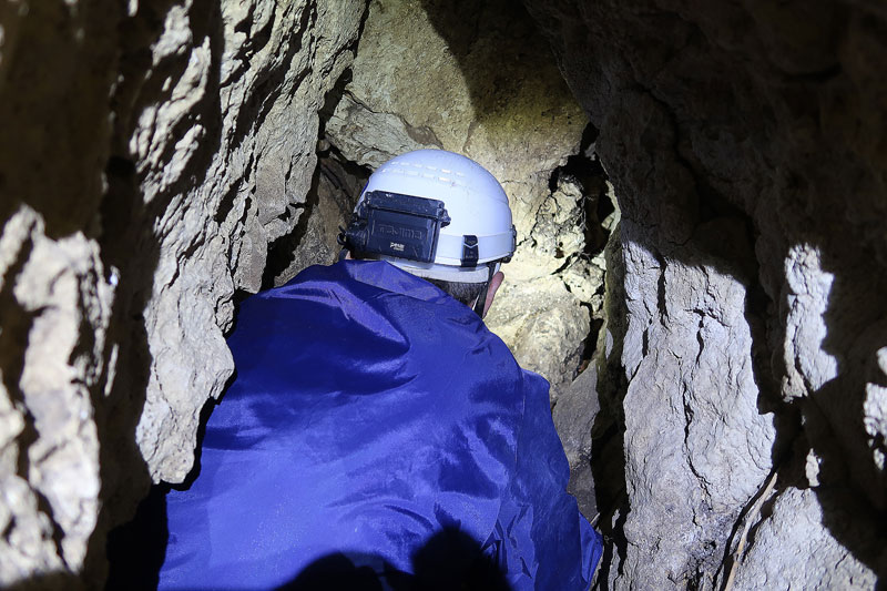 壕内の一番広い場所を撮影しています。壕内空間の左側にも岩陰があり、見えない部分がありますね。ただ左手方向には坑道が伸びていないと聞いています。